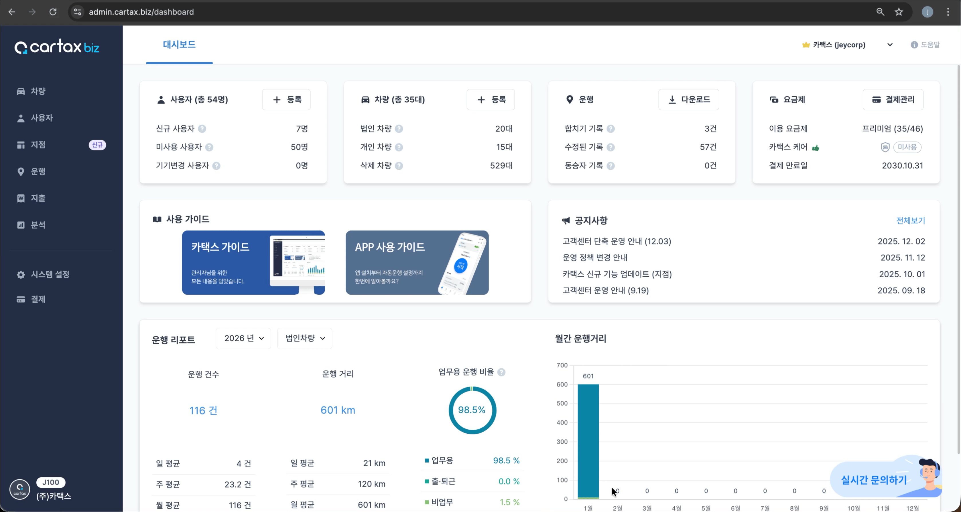 확인 가능 사항 : 결제 일시 , 결제 금액 ,결제 방법, 서비스 기간, 차량 수, 요금제