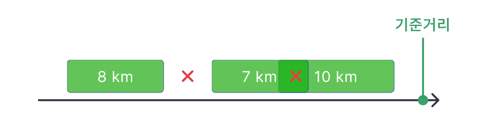 → 공백을 생성하며, 총 운행거리는 25km 증가