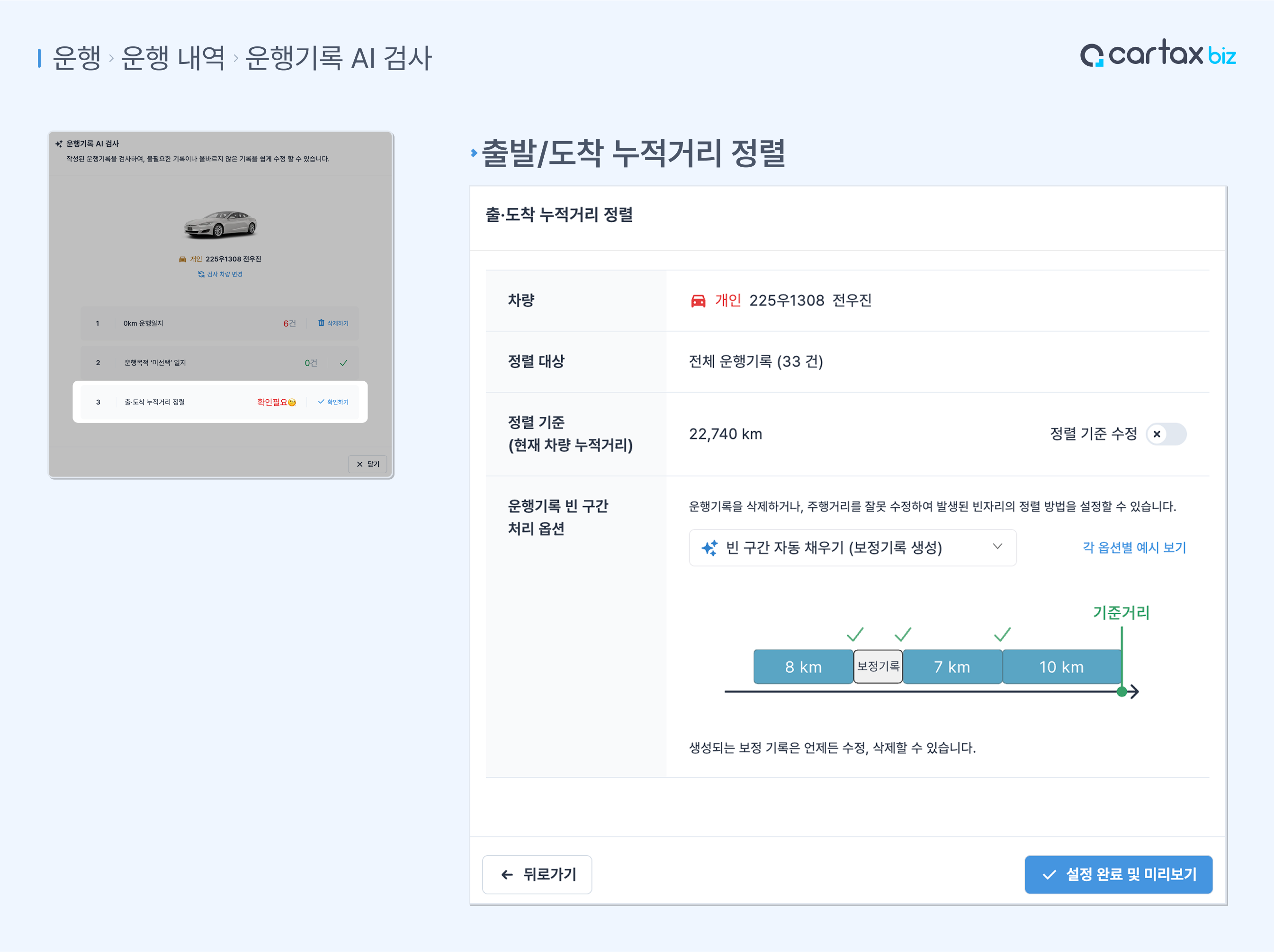 운행기록 보정 기능으로 간편하게 조정을 도와드려요.