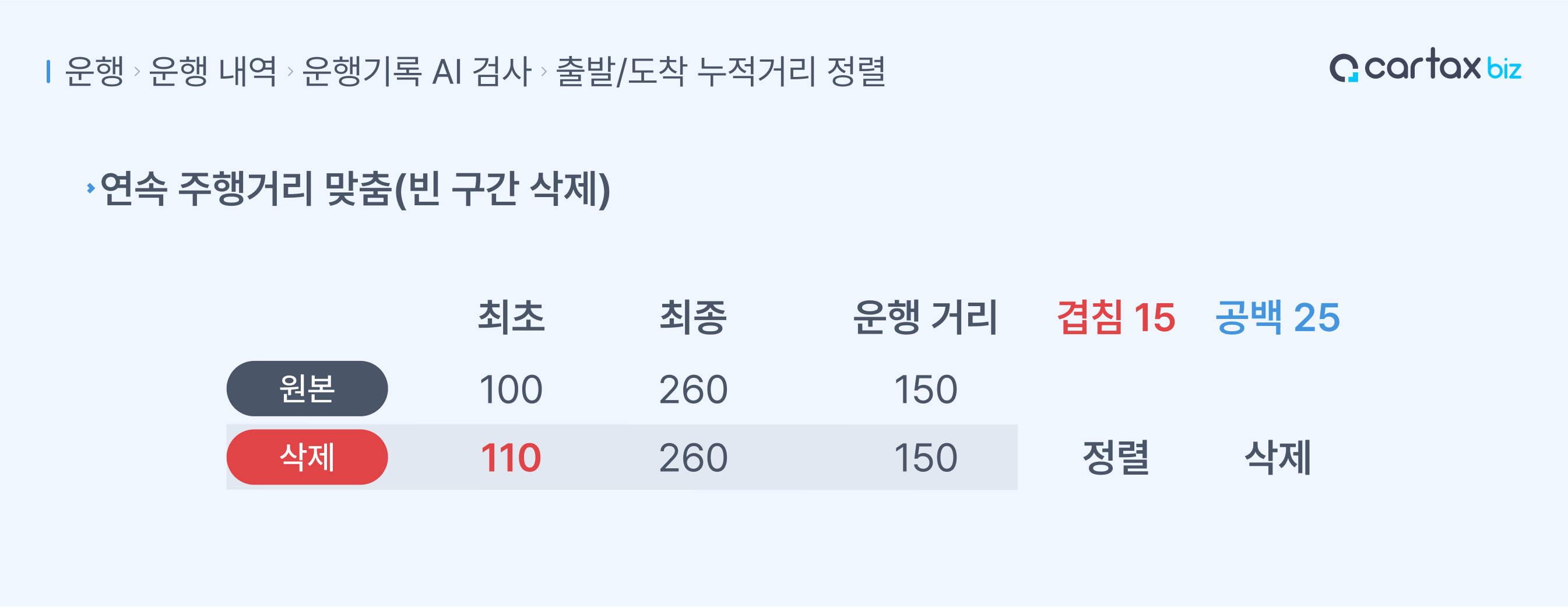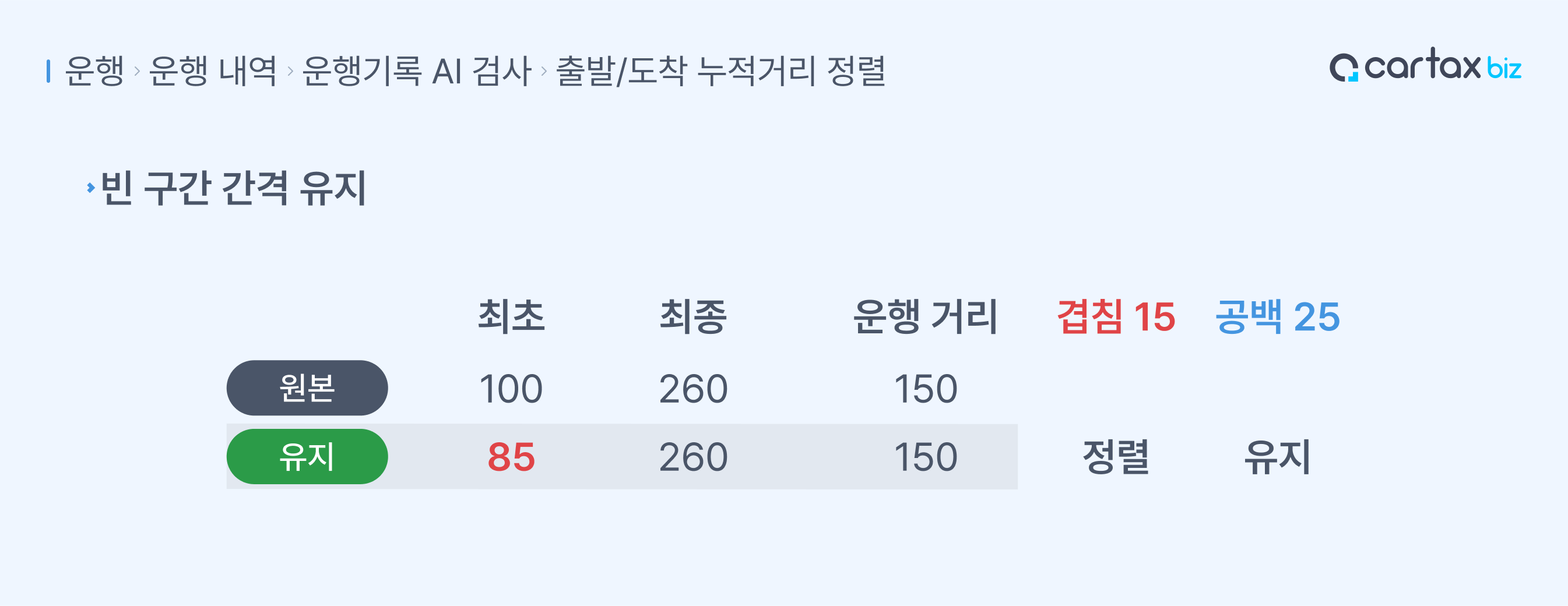 공백 구간을 유지합니다.생성되는 운행기록은 없으며, 겹침 운행 기록만 정렬됩니다.