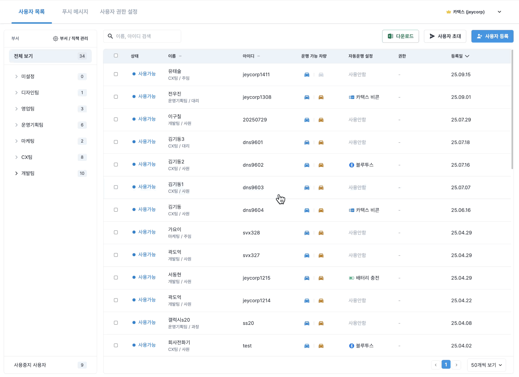 위치 : 사용자 > 사용자 목록 > 부서 관리