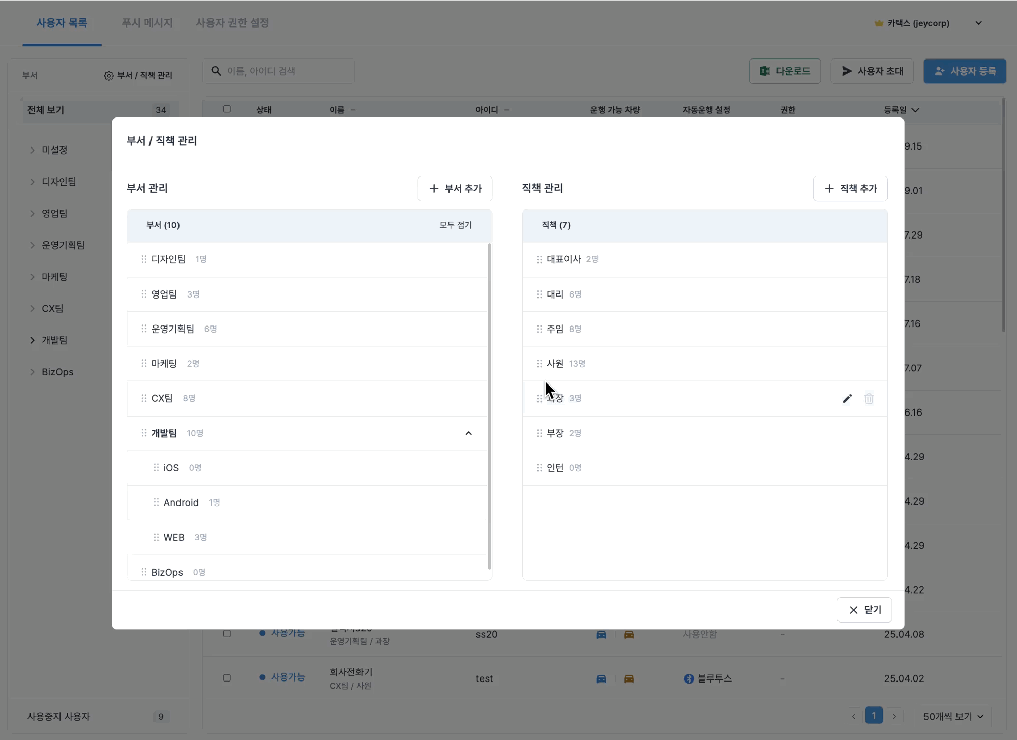 위치 : 사용자 > 사용자 목록 > 직책 관리