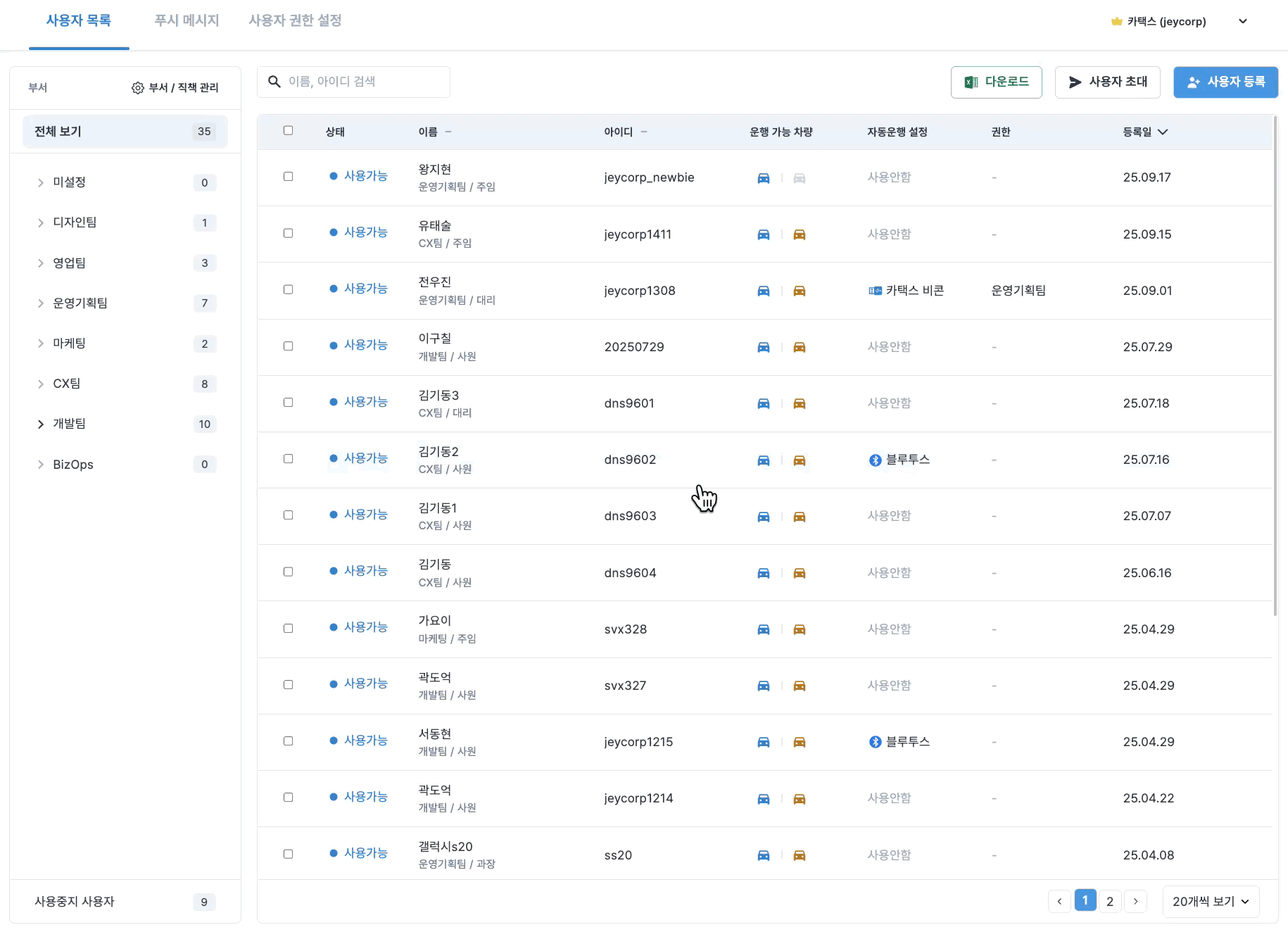 회사의 조직도를 그대로 반영해 보다 직관적으로 사용자를 관리할 수 있는 기능입니다.