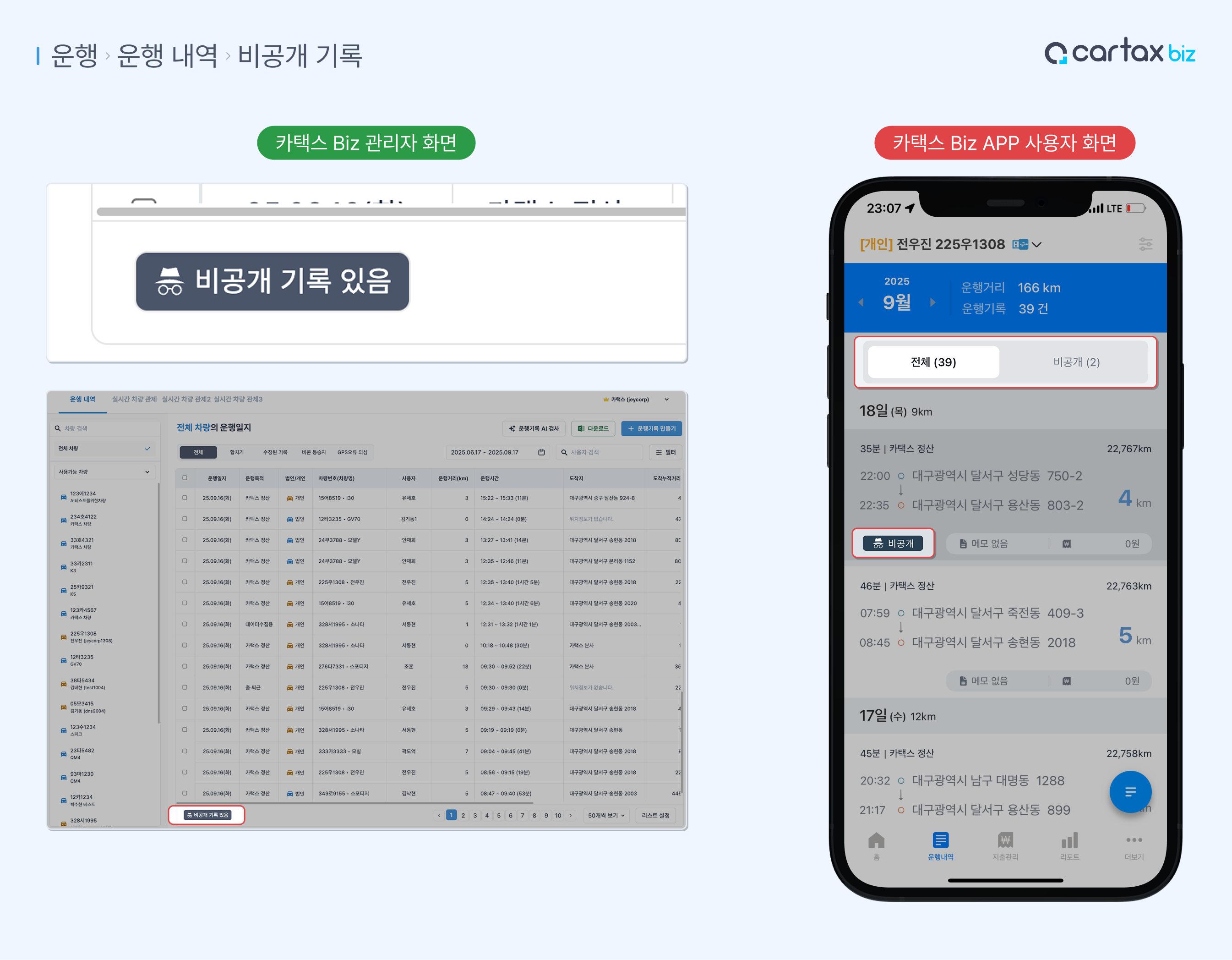 → 비공개 운행 기록은 본인 외 누구도 해당 기록을 절대 확인할 수 없습니다.