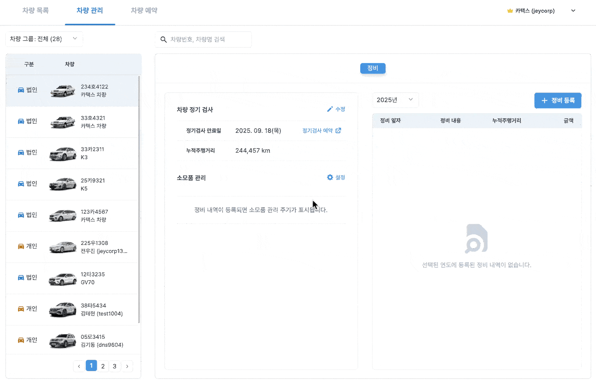 관리 주기를 설정할 경우, 등록된 모든 차량에 적용됩니다.→ 현재는 차량 별 관리가 어려워요.