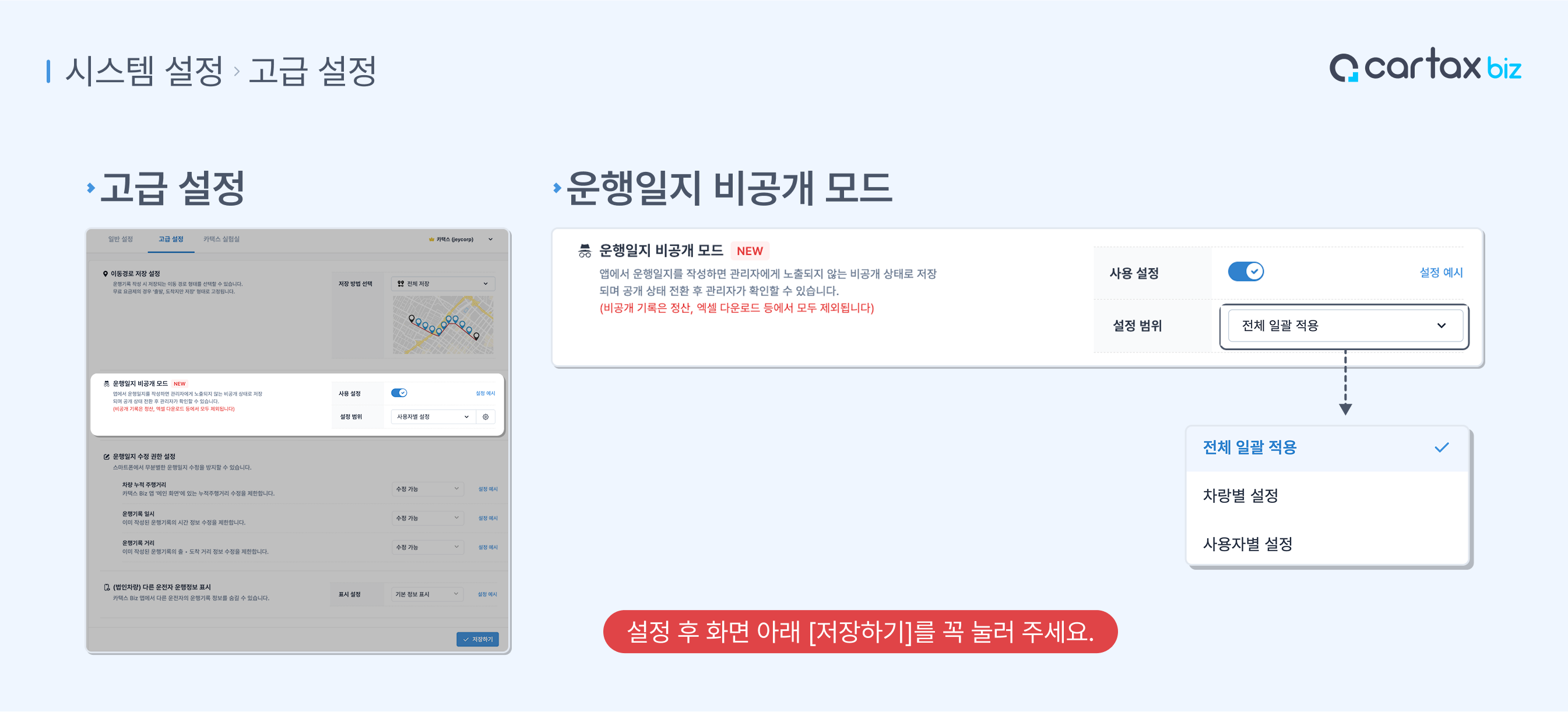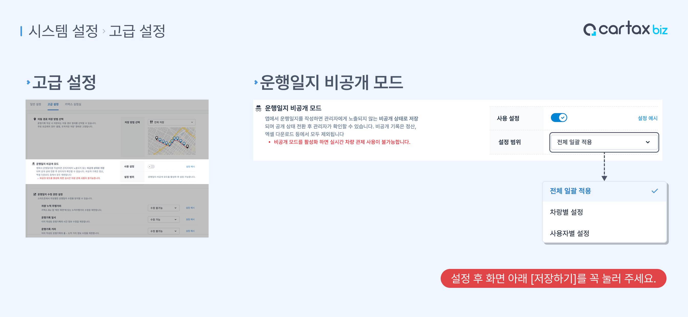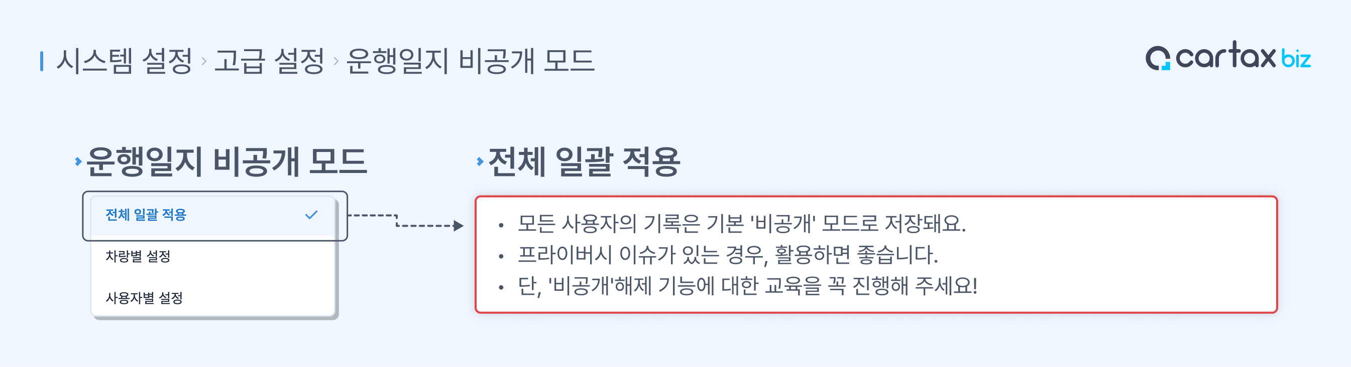 위치 : 시스템 설정 > 고급 설정 > 운행일지 비공개 모드