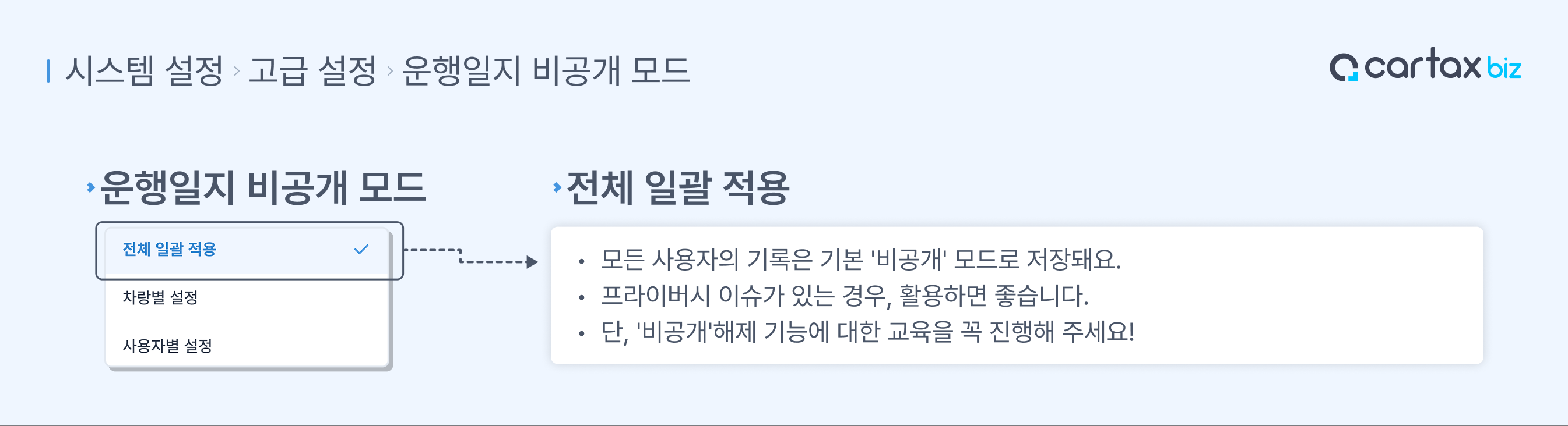 운행일지 비공개모드 설정 시, 실시간 차량 관제가 제한됩니다.