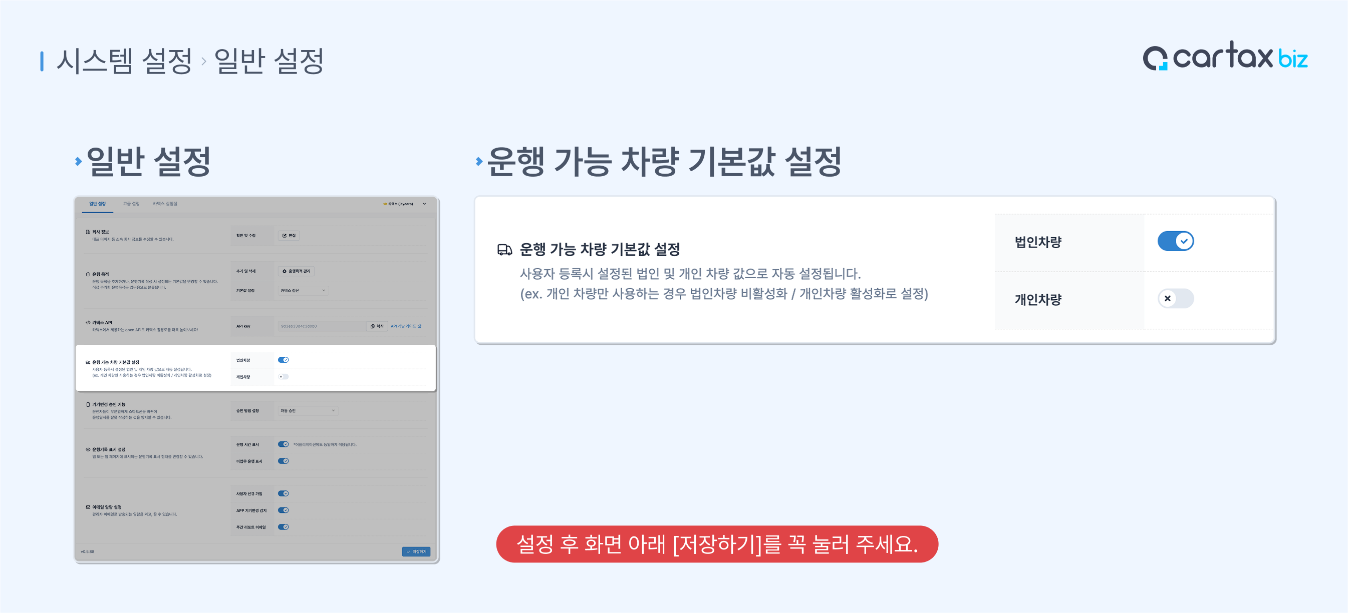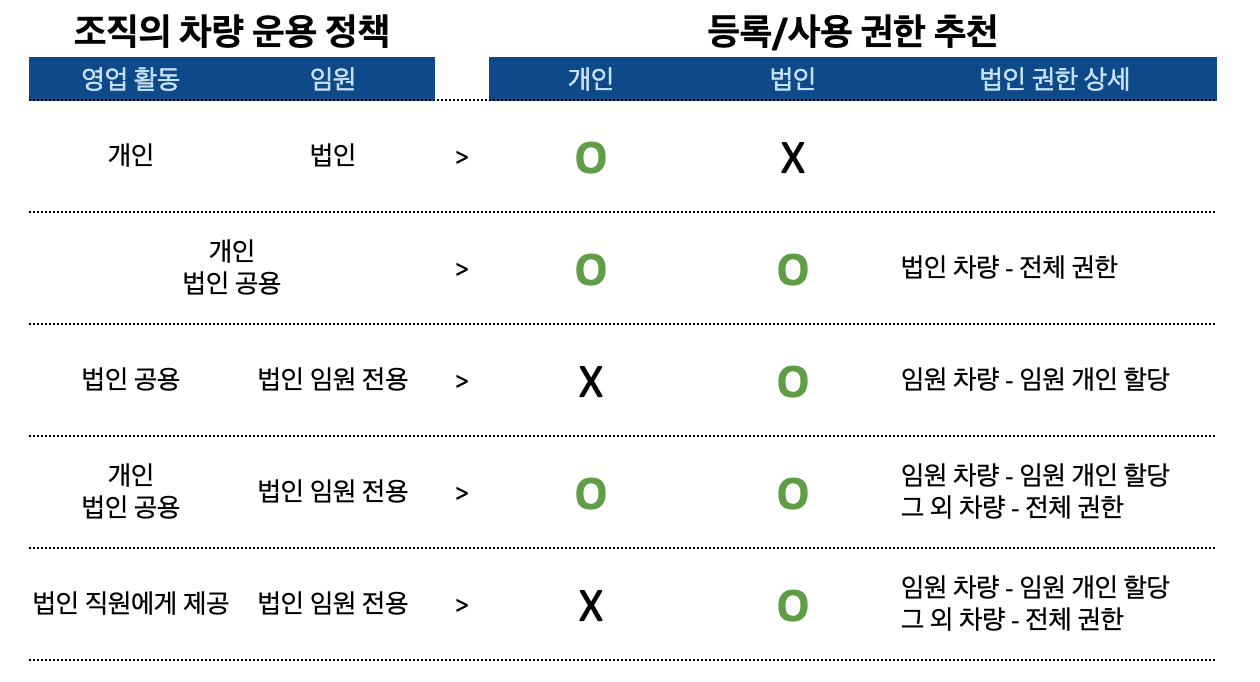 조직의 차량 운용 정책에 따라서 추천하는 기본값 설정을 참고해 보세요!
