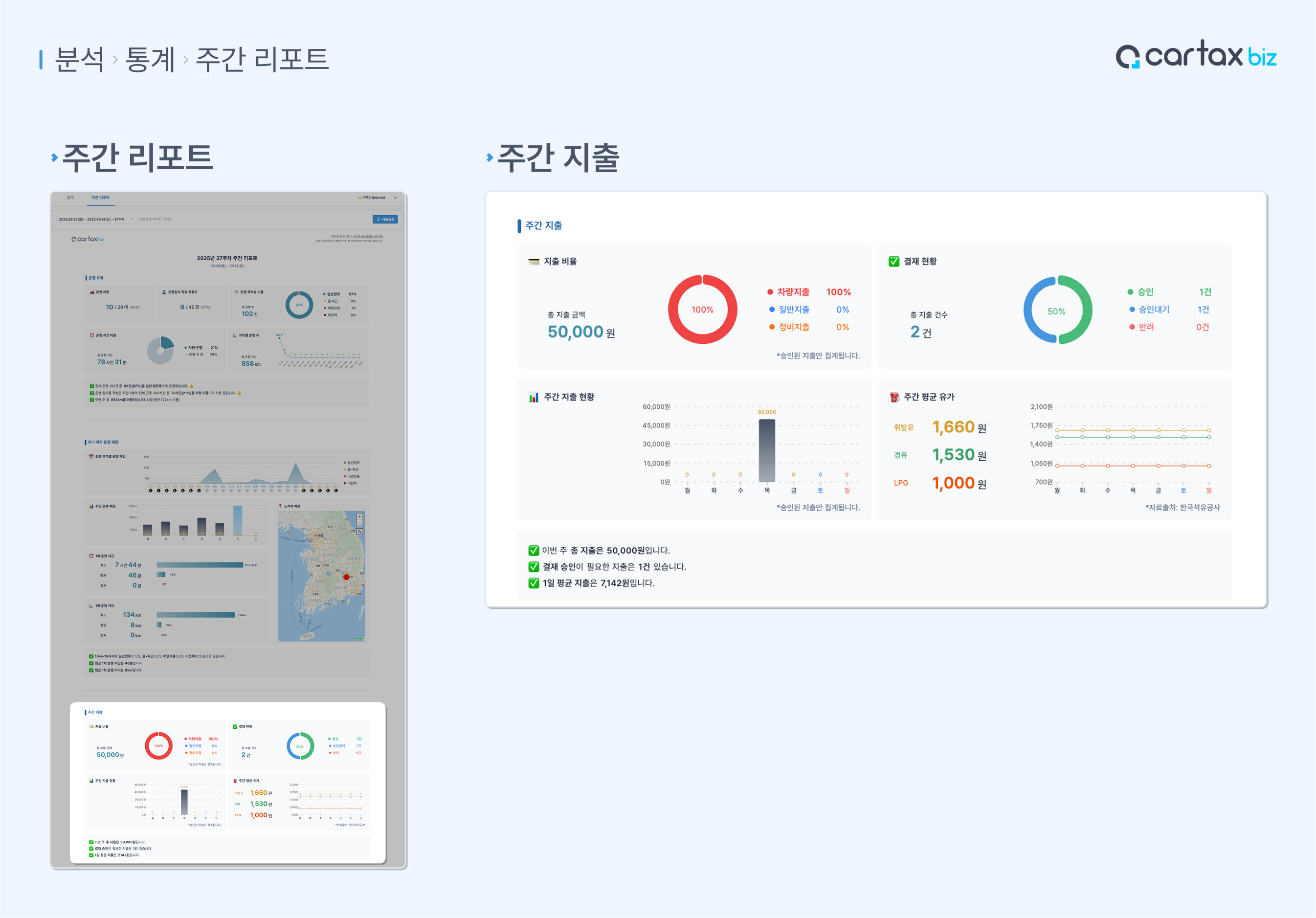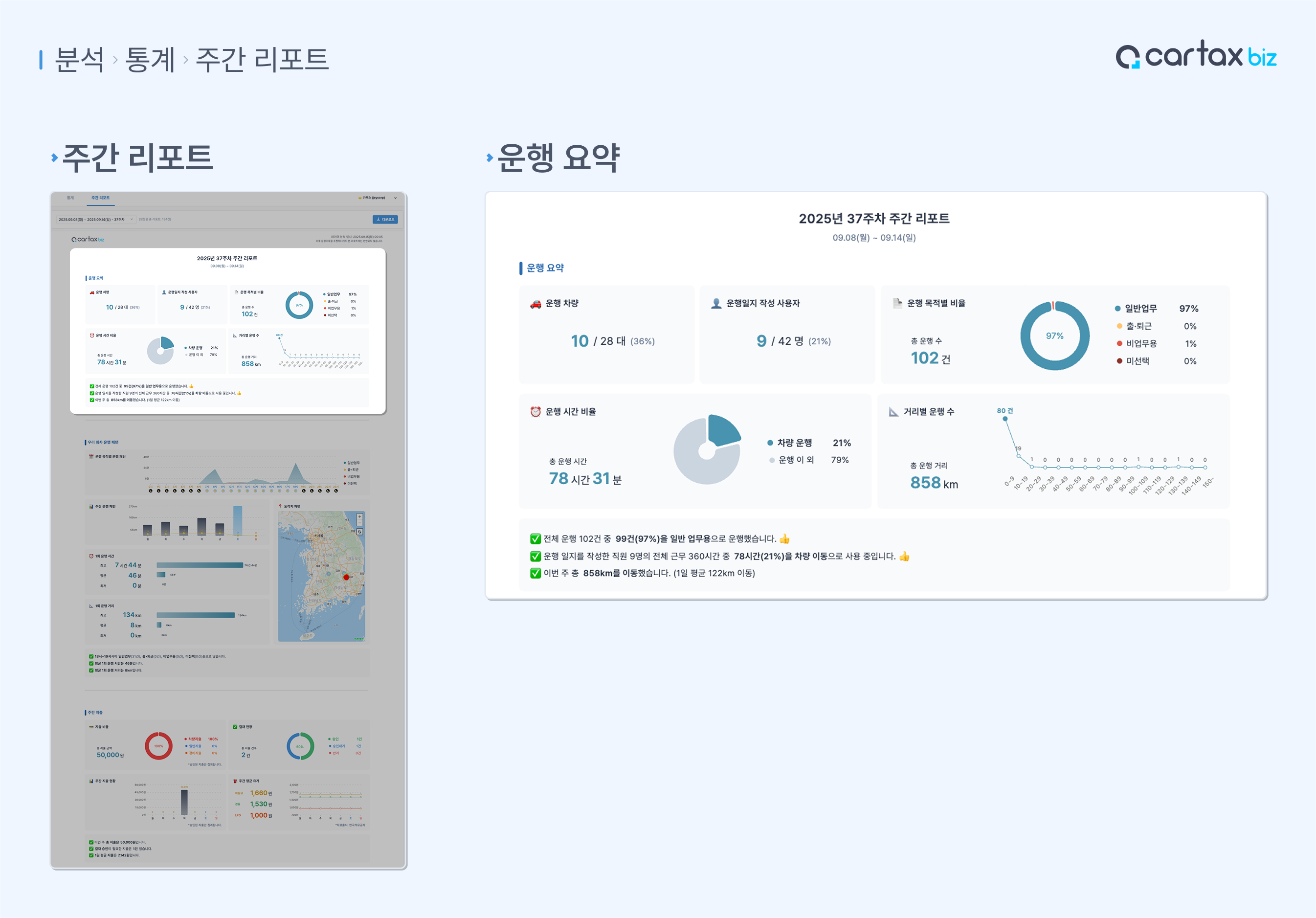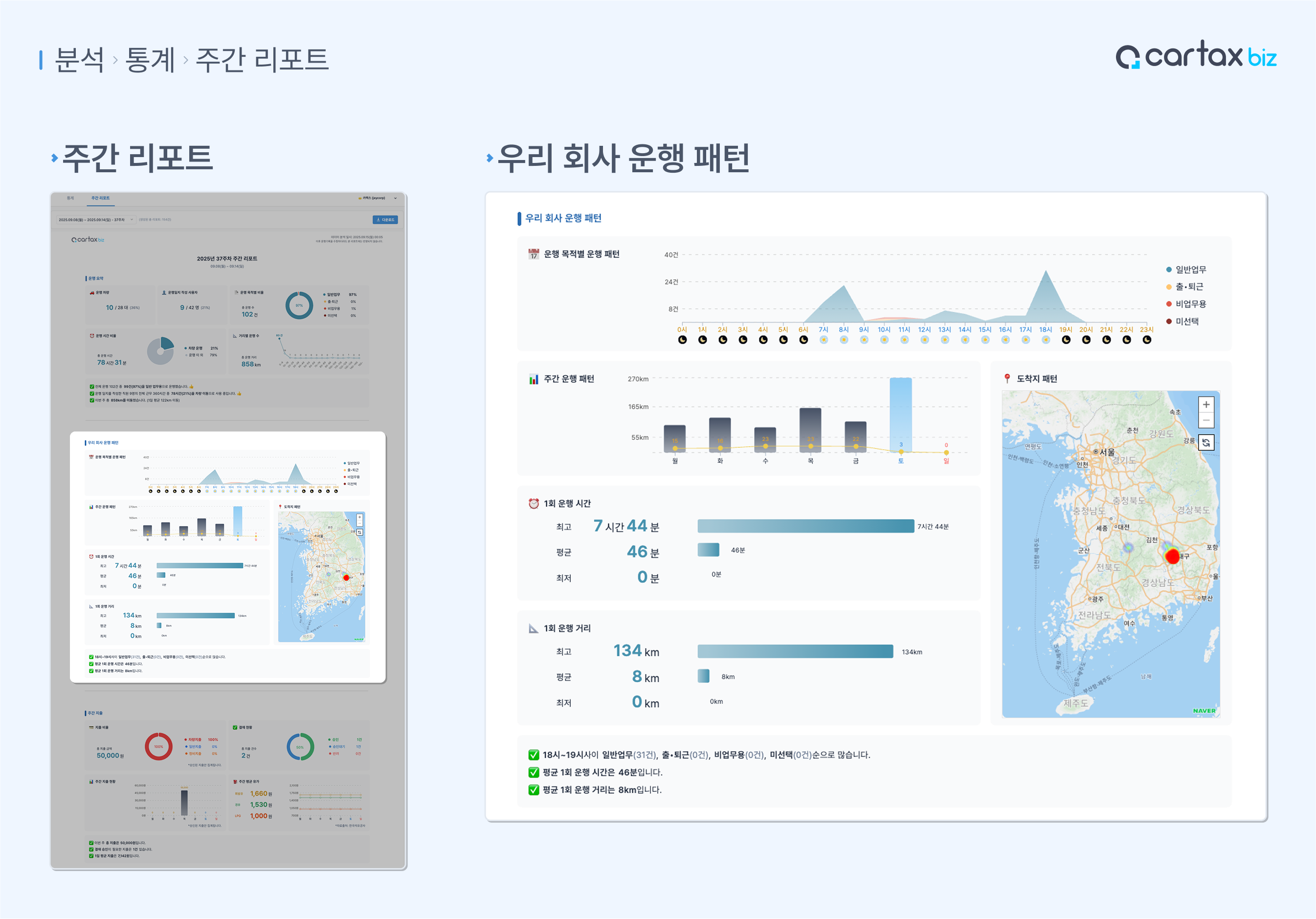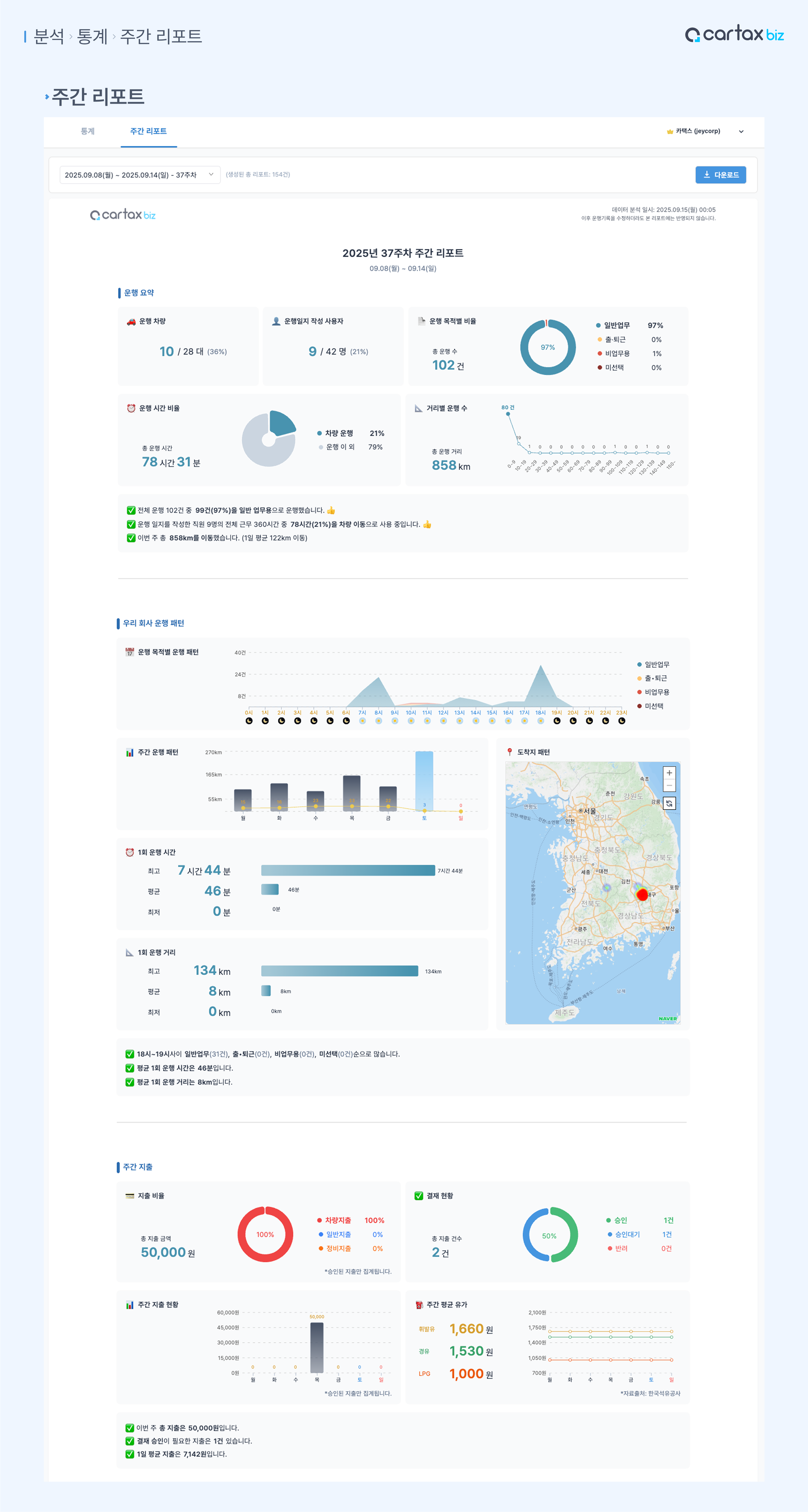 우리 회사의 주간 운행 기록을 리포트로 만들어 드려요!