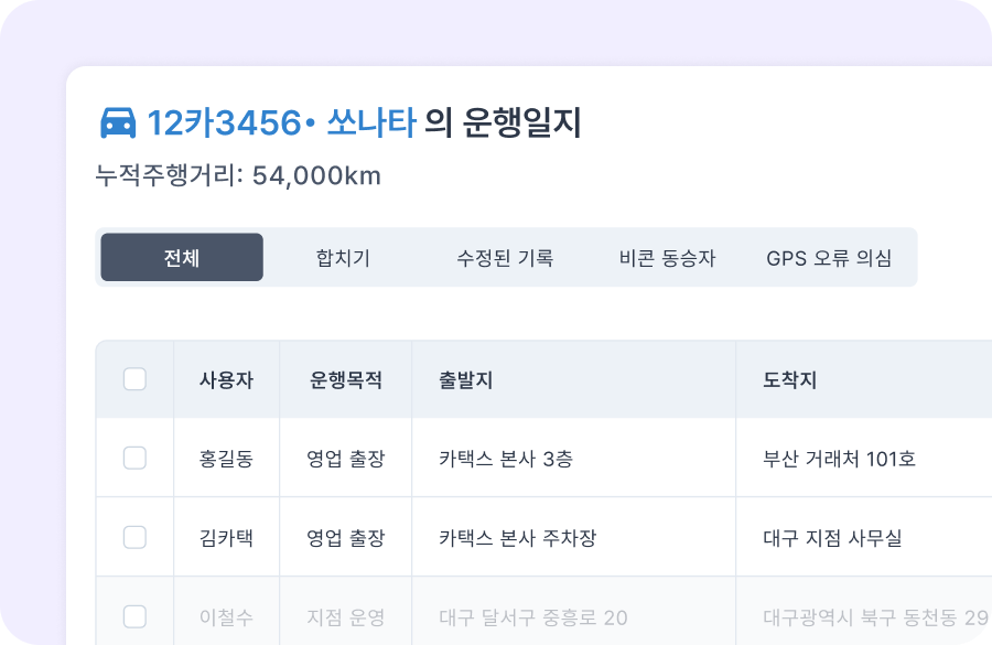 출장 내역 보고, 거래처 방문 관리, 부서별 이동 현황 파악 등 다양한 업무에서 운행 데이터 활용도가 높아지고, 보고 체계 역시 훨씬 간결해질거에요.
