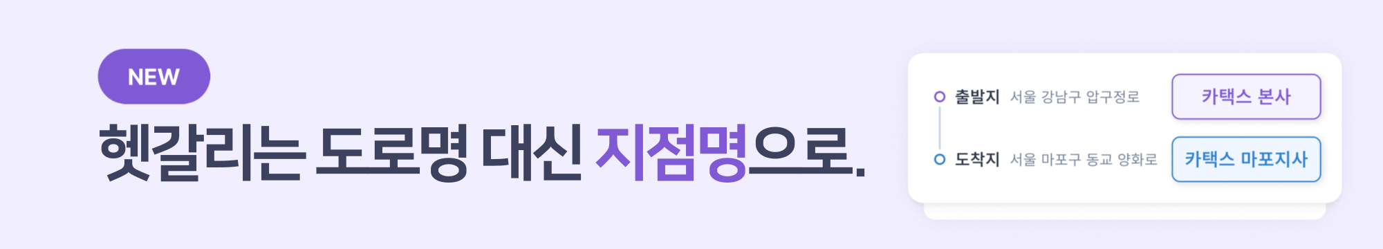 운전자가 출발/도착지의 지점을 선택할 수 있도록 건물명, 가게명, 호수 등 구분해 보세요!