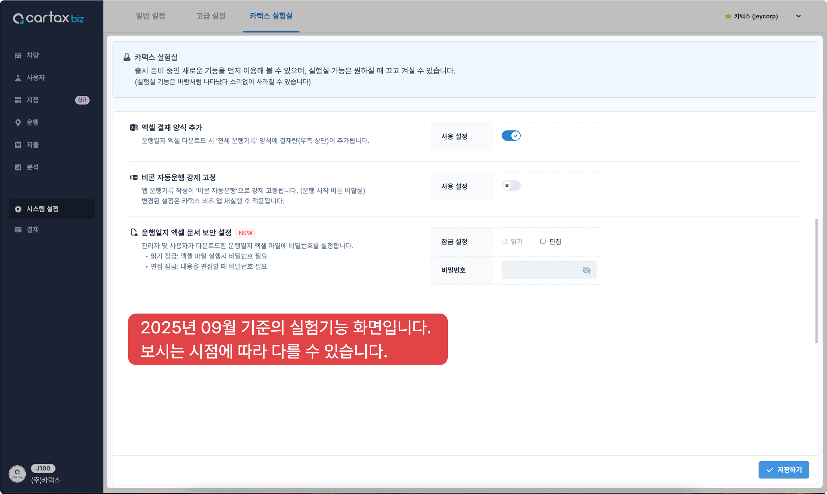 위치 : 시스템 설정 > 카택스 실험실