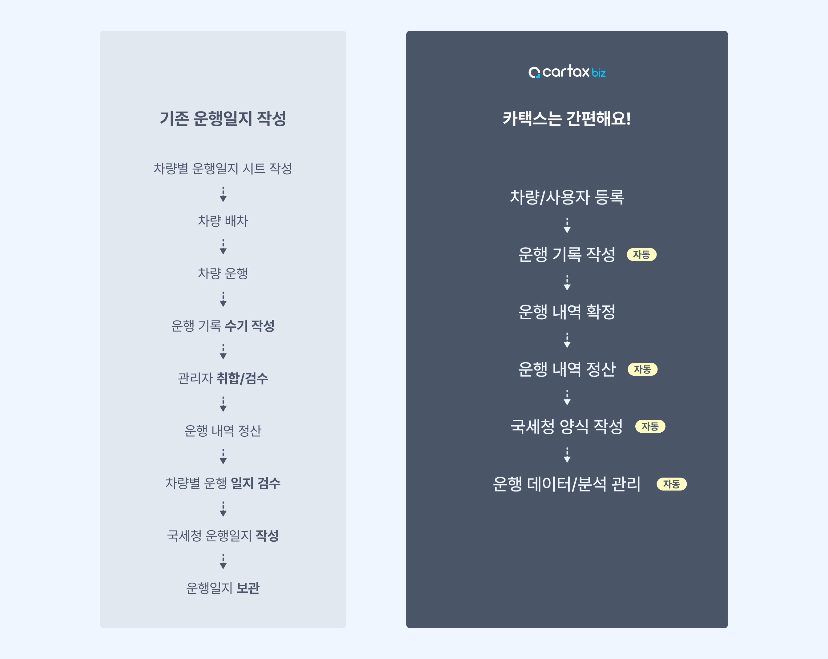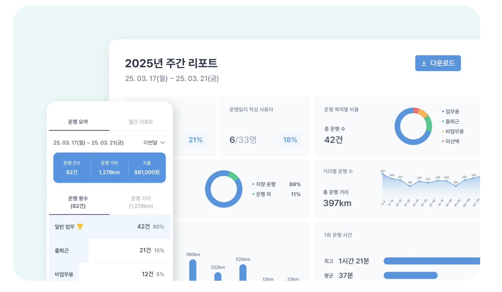국세청 차량 운행일지부터 유류비 정산, 지출 관리, 차량 관제까지 법인 차량 관리에 필요한 모든 것을 담았습니다. 차량 운행을 손쉽게 기록하며 불필요한 업무를 줄여드려요!