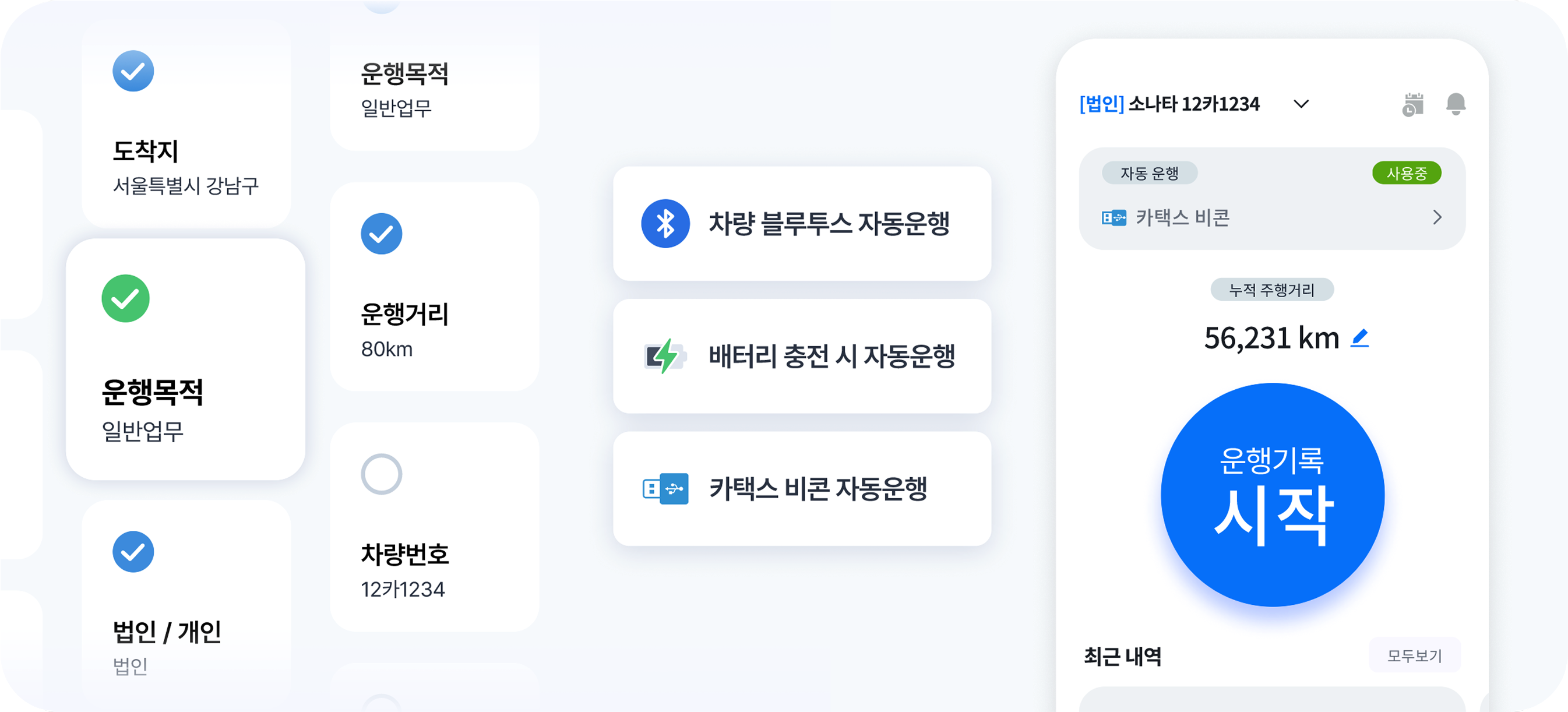 - 사용자(직원)의 APP 실행으로 운행 기록을 자동 작성하고 손쉽게 조회/관리하세요.