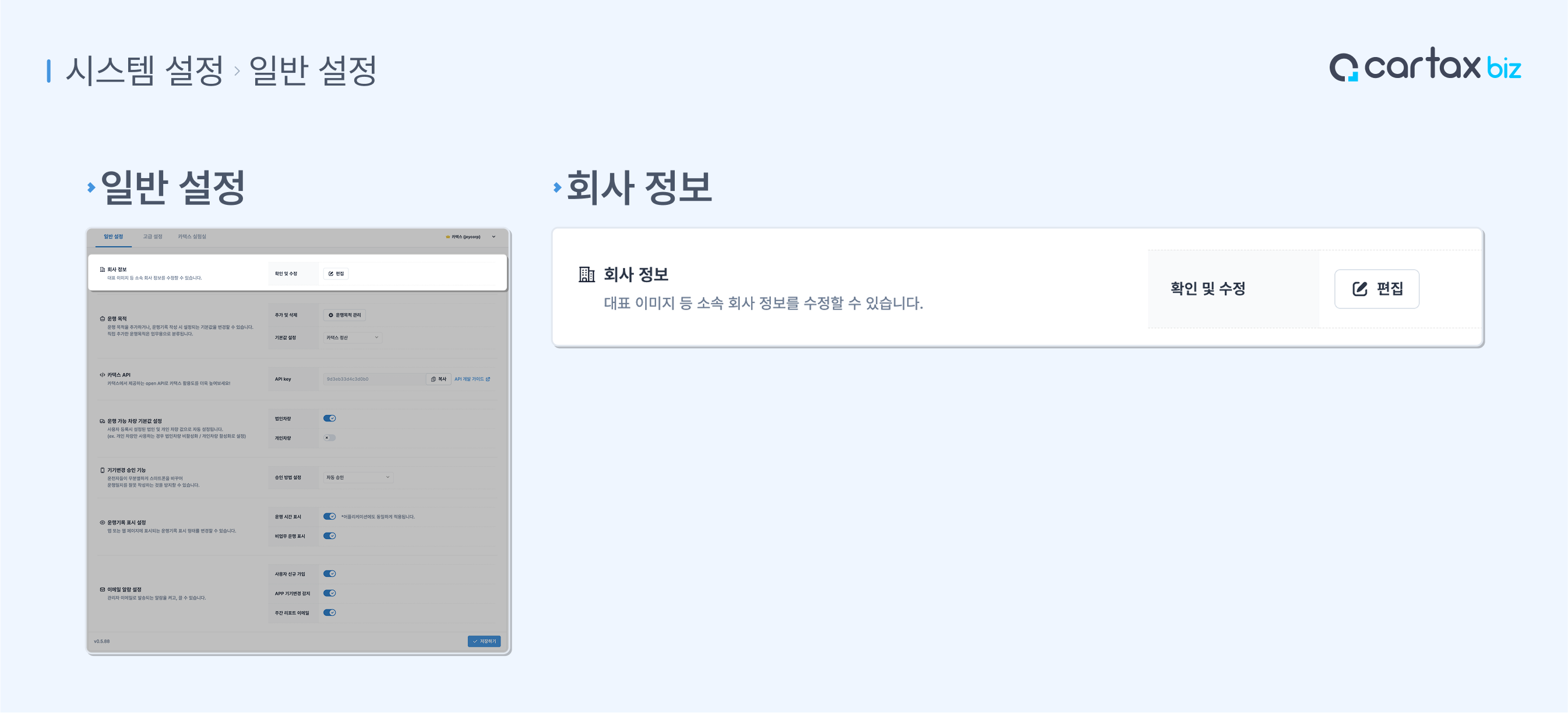 위치 : 시스템 설정 > 일반 설정 > 회사 정보
