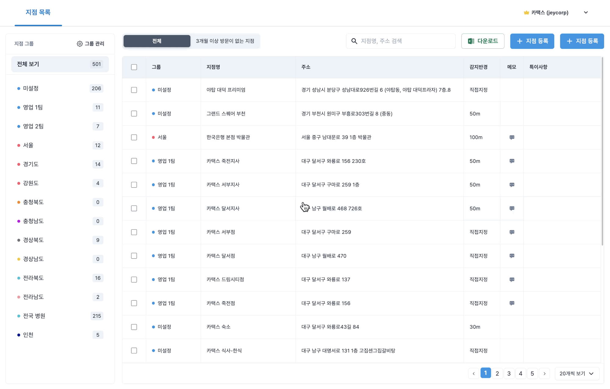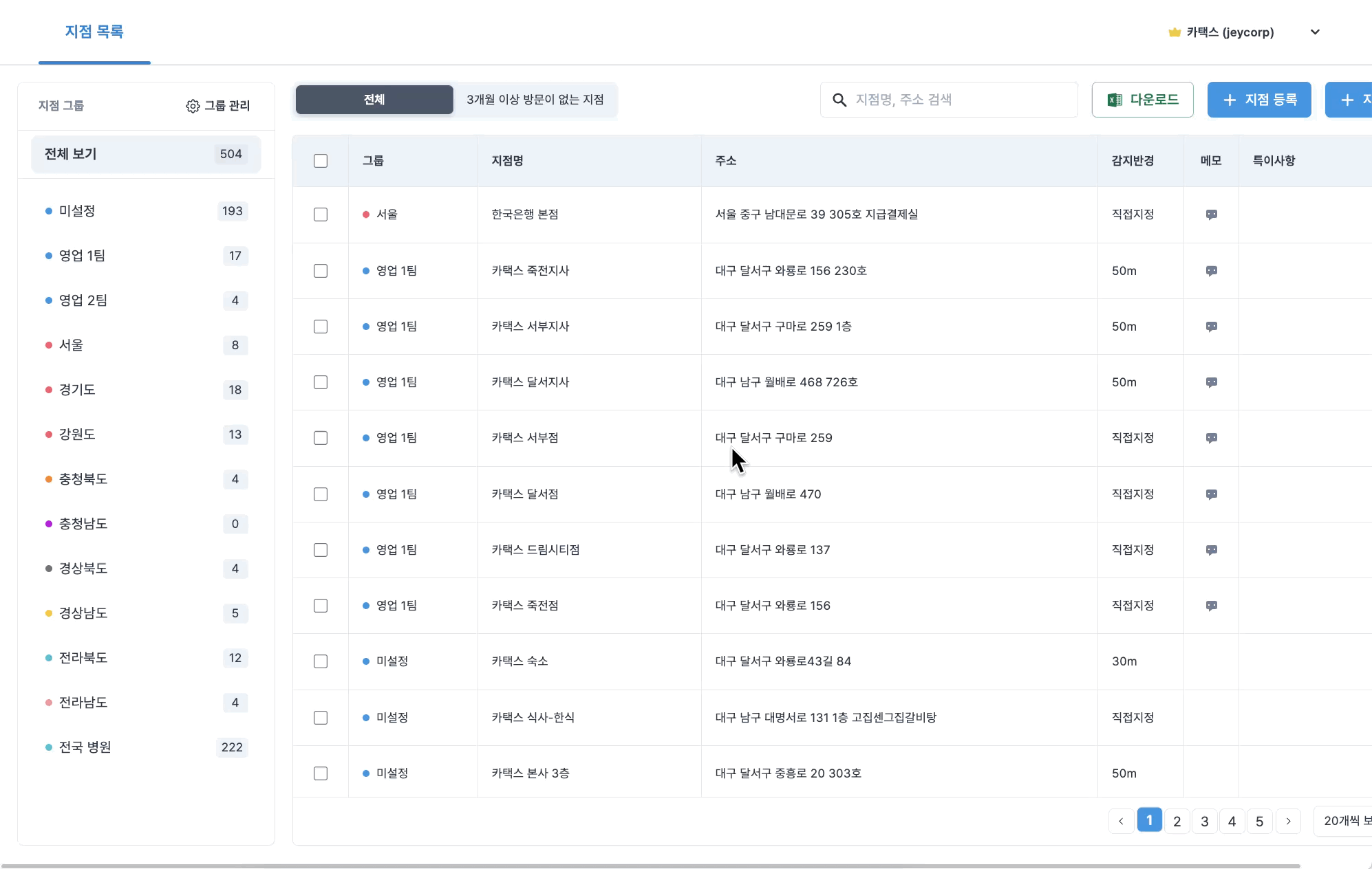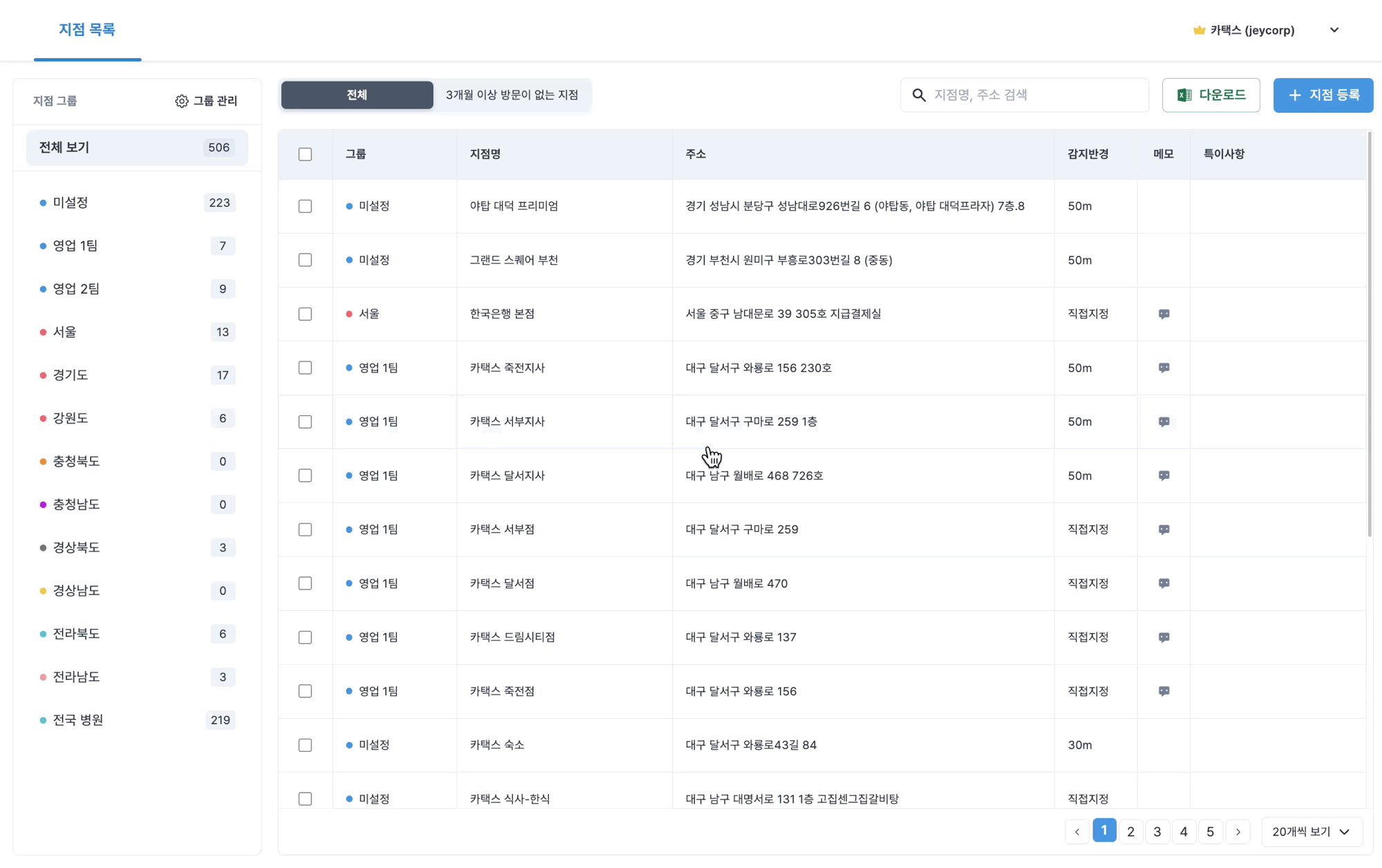 지점을 관리 목적에 맞게 그룹화 해서 관리할 수 있습니다.