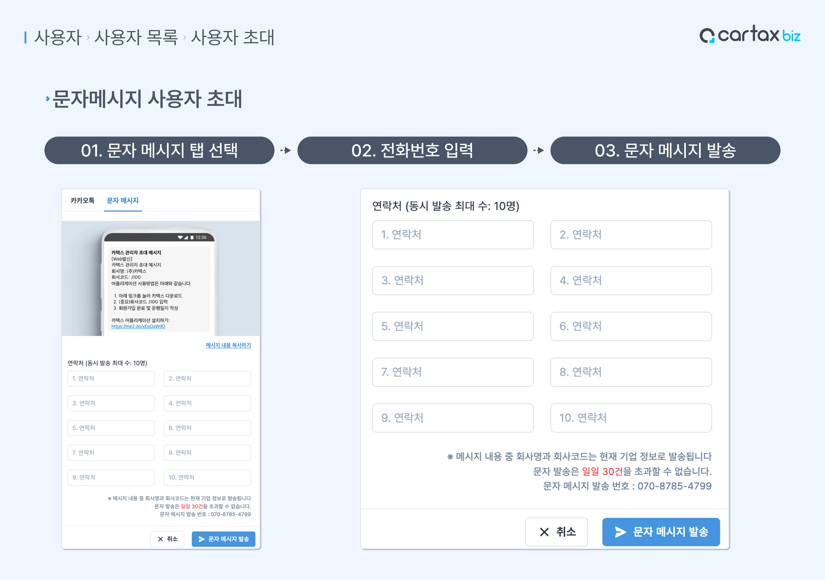 위치 : 사용자 > 사용자 목록 > 사용자 초대 > 문자 메시지